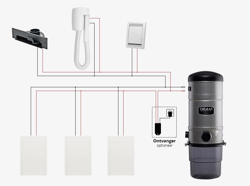 The central vacuum cleaners of a BEAM vacuum system are more powerful than normal canister vacuums from brands such as Miele, Siemens, Dyson, and Philips. The dust sucked up passes through a piping system to the vacuum cleaner and is then collected in the bin under the device.
