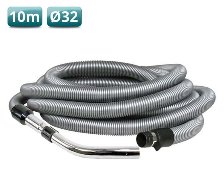 Universal lightweight vacuum hose including pistol grip and end sleeve with metal ring.